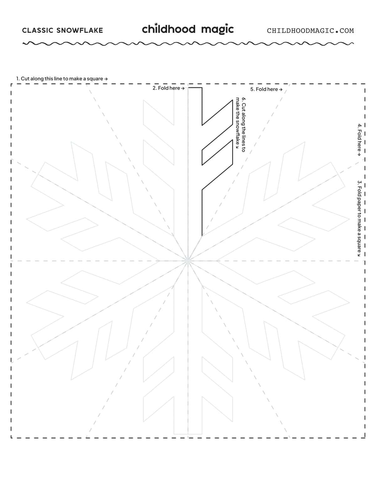 This downloadable PDF includes one large classic snowflake with guide lines so that you can make it into a paper snowflake.